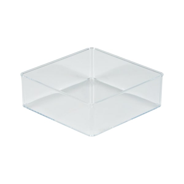 Organize your bathroom vanity or desk drawer with this Simplify Large Square Drawer Organizer. Its large design is the perfect size for desk accessories such as pens, highlighters, notepaper, and more. It is also good for holding jewelry and cosmetic accessories. The clear design makes items inside visible and easy to find. You can keep this transparent organizer bin on your desktop or countertop surface because it fits with any rooms dcor. Organize the little things in life with the Simplify Drawer Organizer.