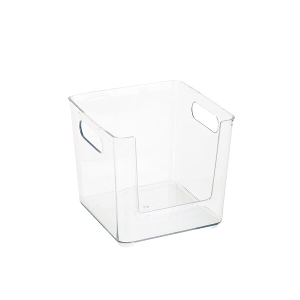 The Simplify Square Open Front Organizer Bin is the best storage and organization solution. It is the perfect size for kitchen and bathroom storage. You can store small kitchen pantry items in it such as spices. Or you can keep in your bathroom to hold soaps and cosmetics. The clear design makes items inside visible and easy to find. The open front makes it easy to grab what you need quickly without having to take the bin off the shelf. The handles make it easy to transport. You can keep this transparent storage bin on your desktop or countertop surface because it fits with any rooms dcor. You need this bin to help you organize your home!