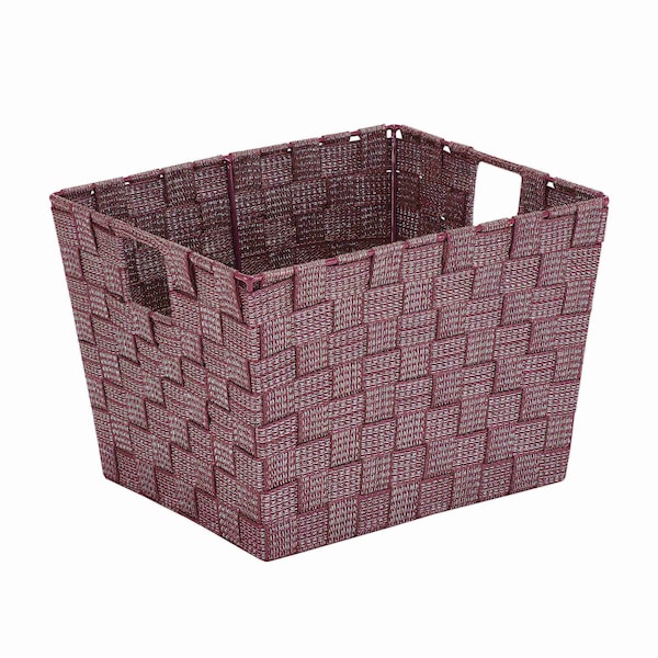 Storage Bin, Plastic, Burgundy, 10 in H, 12 in W, 10 in L