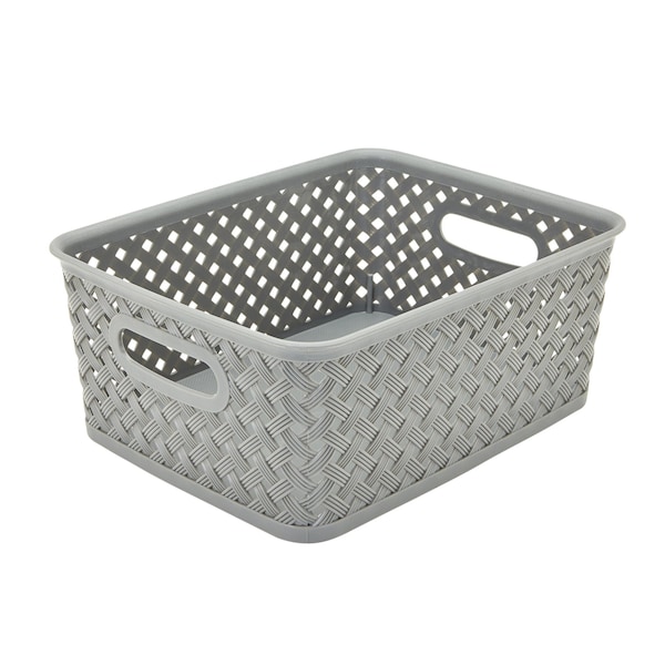 Simplify's Resin Wicker Storage Bin has a unique wicker design and is made ofsturdy polypropylene plastic. 2 sturdy open handles makes it easy to carry Bin around from one place to another. It has a lightweight design and holds a multitude of items, organizing and de-cluttering homes. Wide selection of colors to fit any setting.