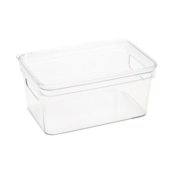 Storage Bin, Plastic, Super Clear, 10.2 in H, 6.69 in W, 10.2 in L