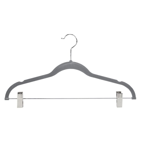 Velvet Hangers with Clips in Grey, 6PK