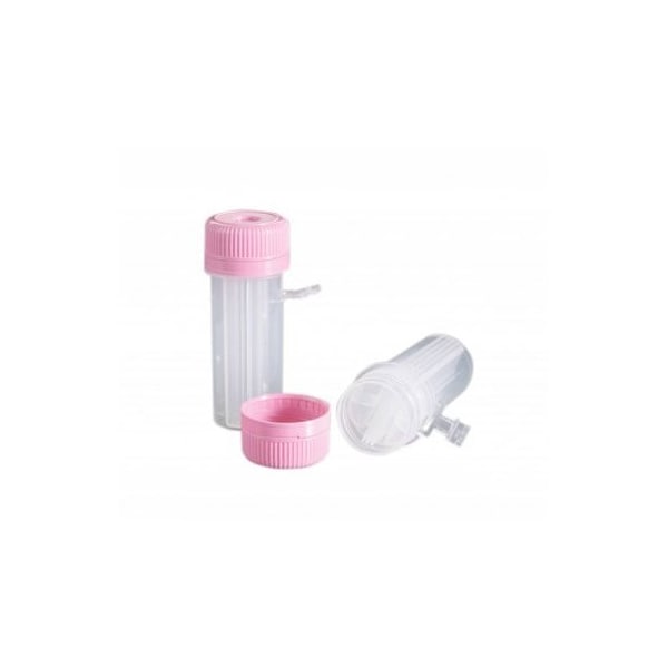 LockMailer Tube is a multipurpose container for mailing, staining or storing microscope slides. Designed with a unique tamper evident screw cap that ensures sample integrity during all phases of storage and transport. Free standing tube holds up to 4 standard 3 x 1" slides vertically with internal volume of 12ml. Slotted inner channels keep slides separate. Tubes are made of polypropylene and high density polyethylene cap.