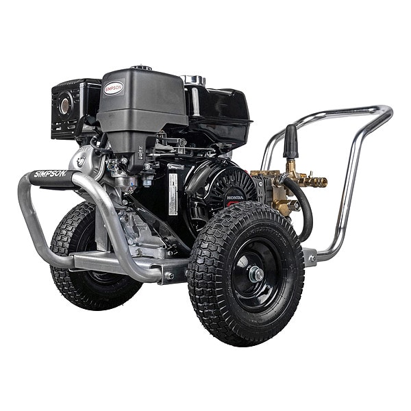 Gas-Powered Pressure Washer, Engine Brand Honda, Engine Displacement 389 cc, Detergent Injection System Yes, Pump Type Triplex, Pump Drive Belt, Usable Hours per Week Not Applicable, Burner Fuel Not Applicable, Includes 3/8 in x 50 ft Steel Braided Monster Hose, Engine Oil, Ergonomic Spray Gun and Lance, Quick Connect Nozzles, Siphon Tube