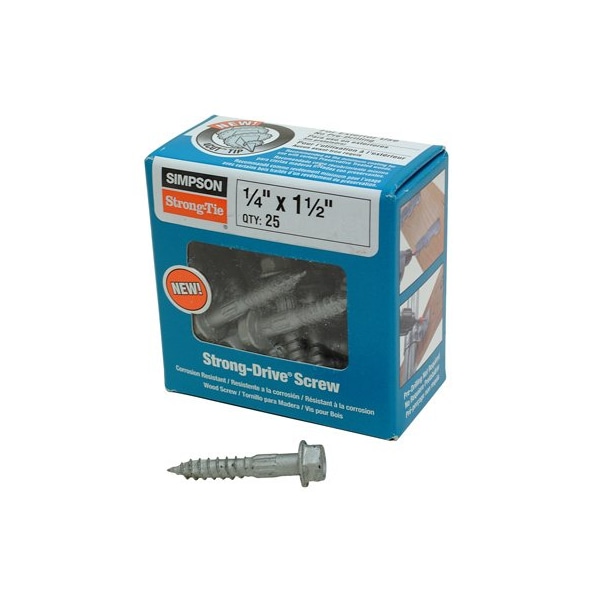 25 Pack, 15, Strong Drive SDS Structural Wood Screws, Designed For Installation In Simpson Strong Tie Connectors As Well As Wood To Wood Applications, Double Barrier Coating For Exterior TreatedWood Applications, Identification Stamped Into The Head With Length, Low Speed 12 Drill With A 38 Hex Driver Is The Recommended Tool For Installation