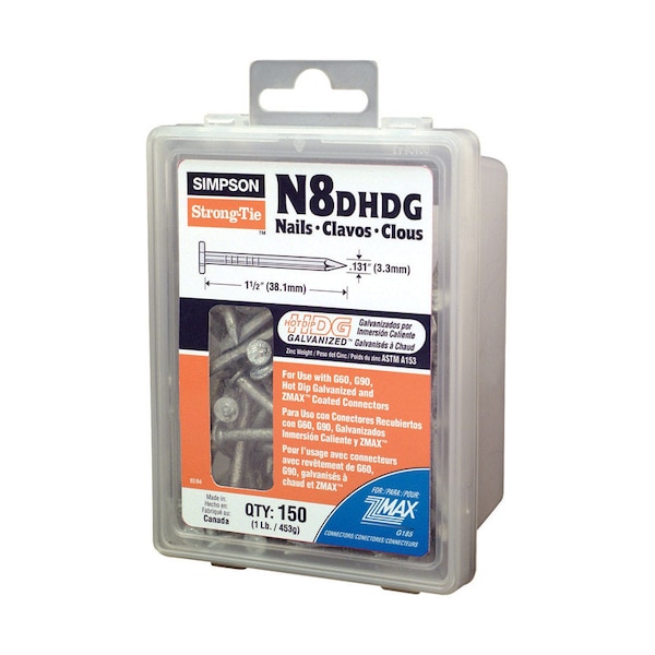 Common Nail, 2-1/2 in L, 8D, Hot Dipped Galvanized Finish
