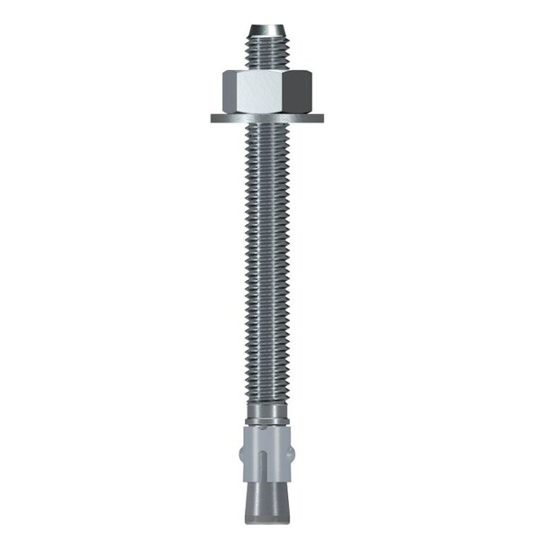 Simpson Strong-Tie WA50512 Wedge Anchor 1/2 x 5-1/2in 25ctA non-bottom-bearing, wedge-style expansion anchor for use in solid concrete or grout-filled masonry. The Wedge-All wedge anchor is available in carbon steel with zinc or mechanically galvanized coating, as well as Types 303/304 and Type 316 stainless steel. Threaded studs are set by tightening the nut to the specified torque. The Wedge-All is code listed for grout-filled masonry applications. Key Features Code listed under IBC/IRC for grout-filled CMU per ICC-ES ESR-1396One-piece, wrap-around clip ensures uniform holding capacityThreaded end is chamfered for ease of starting nutAvailable in a wide range of diameters and Length s MaterialCarbon or stainless steel Types 303/304; Type 316 FinishCarbon steel anchors are available zinc plated or mechanically galvanized InstallationDrill a hole in base material using a carbide drill bit the same diameter as the nominal diameter of the anchor to be installed. Drill the hole to the specified embedment depth, and blow it clean using compressed air. Overhead installations need not be blown clean. Alternatively, drill the hole deep enough to accommodate the embedment depth and the dust from drilling. Assemble the anchor with nut and washer so the top of the nut is flush with the top of the anchor. Place the anchor in the fixture, and drive it into the hole until the washer and nut are tight against the fixture. Tighten to the required installation torque. Wedge-All Diameter in. Drill Bit Size in. Min. Fixture Hole in. Wrench Size in. 1/4 1/4 5/16 7/16 3/8 3/8 7/16 9/16 1/2 1/2 9/16 3/4 5/8 5/8 11/16 15/16 3/4 3/4 7/8 1 1/8 7/8 7/8 1 1 5/16 1 1 1 1/8 1 1/2 1 1/4 1 1/4 1 3/8 1 7/8 Caution Do not use an impact wrench to set or tighten anchorsOversized holes in the base material will make it difficult to set the anchor and will reduce the anchor, load capacity Specifications: Anchor Diameter: 1/2inAnchor Length : 5-1/2inAnchor Material: ZincQuantity: 25Anchor Head Type: HexUPC: 044315792700