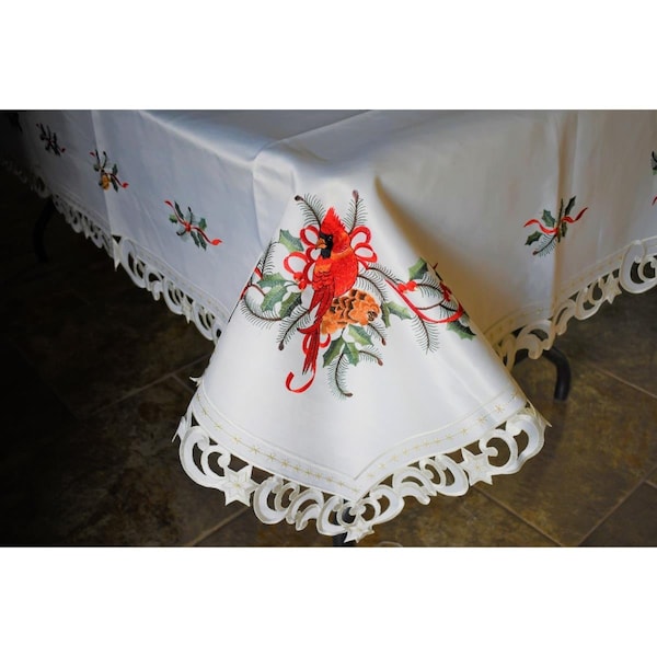 68 x 68 in. Cardinal & Pine Cone on Branches Tablecloth