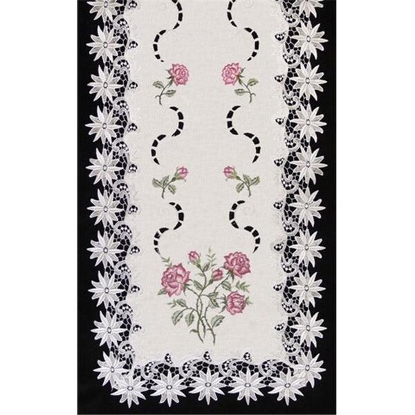 Sinobrite H0608-RS Pink Rose Lacey Edge Square Table-Topper; 36 x 36 in.