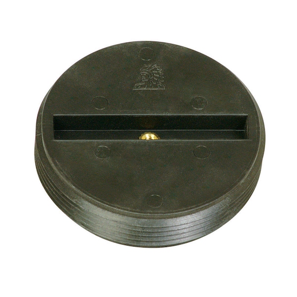 3-1/2 inch ABS polypropylene flush plug with threaded brass insert for easy cleanout cover installation. It is acid resistant and chemically insert.