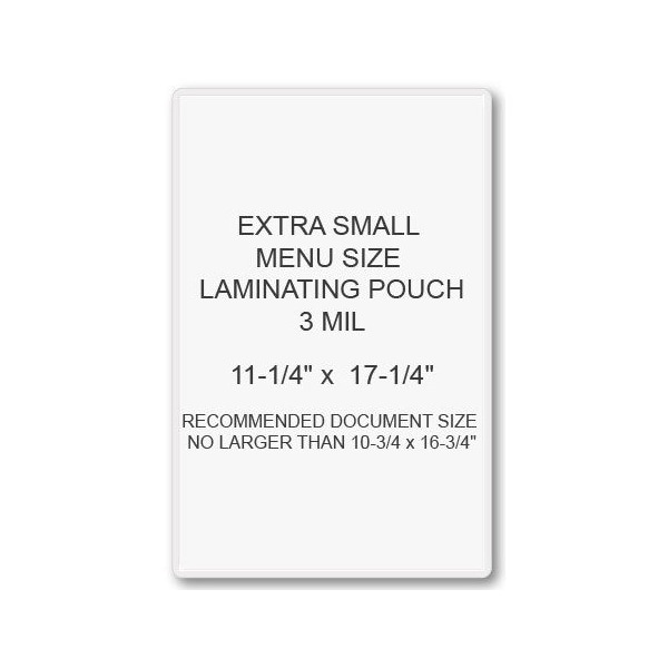 SircleLam® Extra Small Menu Size Pouches are 3mil thick laminating pouches designed for protecting and preserving small menu-sized documents. These pouches are extra small in size, making them perfect for laminating items such as business cards, ID badges, and small menus.