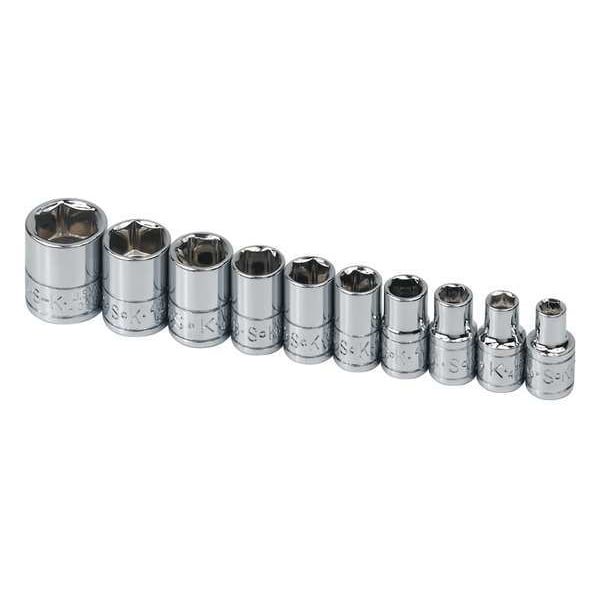1/4" Drive Socket Set, SAE, 3/16 in to 9/16 in, Chrome, 6-Point, 10-Pieces