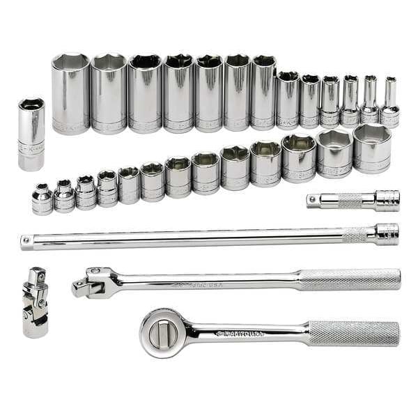 3/8" Drive Socket Set SAE 32 Pieces 1/4 in to 1 in , Chrome