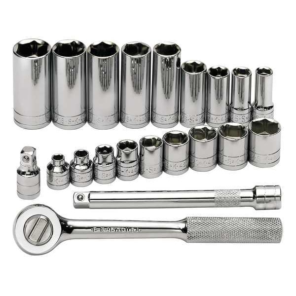 3/8" Drive Socket Wrench Set, SAE, 21pcs, Skt Wrch St, Chrm, 6Pt, 1/4 - 7/8 in