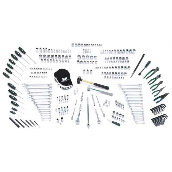 The SK Professional Tools VTS03211 Master Tool Set is the perfect choice for mechanics and technicians. It contains a comprehensive range of tools that can tackle any job. This set comes with 272 pieces, including pliers, screwdrivers, sockets and accessories, striking tools and wrenches. The 1/4 in., 3/8 in., and 1/2 in. drive sizes are available to handle various fasteners. Striking tools include 10 oz soft face hammer, 24 oz ball pein hammer, 32 oz rubber mallet, chisels and punches. There are also adapters, extensions hat ratchets universal joints and wrench racks included for your convenience. With SK Professional Tools' VTS03211 Master Tool Set at hand, you will never have to go without the right tool for the job again.