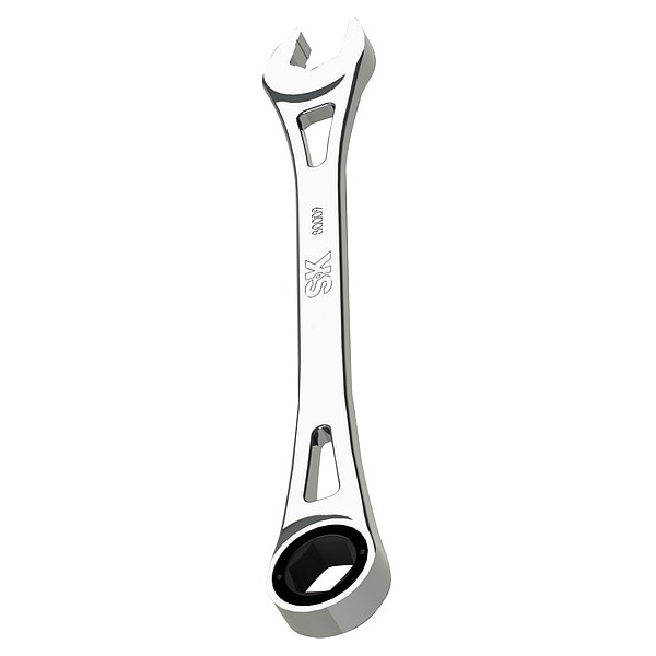 If you are looking for a high-quality ratcheting wrench, the SK Professional Tools 80009 is the one to have. The ratcheting open and box end offers convenience in use, while the alloy steel construction ensures durability. The combination wrench has an overall length of 9 3/8 in., with a head size of 16 mm. The six-point wrench has an offset of 0 degrees, with an alloy steel construction that is chrome finished for protection against rust and corrosion. The open and box end are both ratcheting for ease of use. This SK Professional Tools Ratcheting Wrench will last through years of heavy duty work.