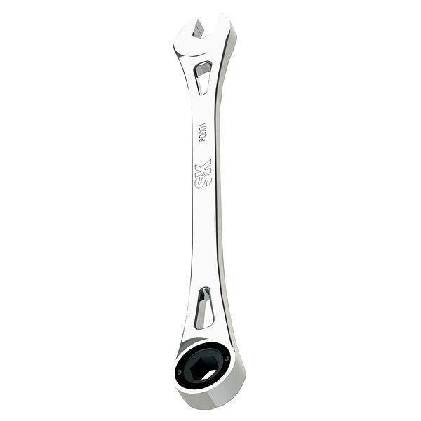 Ratcheting Wrench, Alloy Steel, Chrome, Head Size 8 mm, Overall Length 6 3/4 in, Head Offset Angle 0 Degrees , Opening Angle (Deg.) 0 Degrees , Standard, Head Thickness 5/16 in, 1/2 in, Metric, Rounded