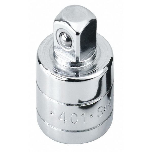 If you need to convert your 3/8" drive socket set into a 1/2" drive, this SK Professional Tools 401 1/2" Drive Adapter is the tool for you. The adapter features a corrosion resistant chrome finish and a spring loaded steel ball for easy installation. Its overall length is 2 in., while its output drive size is male square. It has an input drive size of 1/2 in. and an output drive size of 3/8". The SK Professional Tools 401 1/2" Drive Adapter will help you complete any task quickly and efficiently.