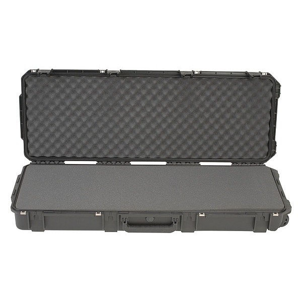 Protective Case, Bottom Depth 4 in, Closure Type Latches, Color Black, Electrostatic Discharge Not Electrostatic Discharge Conductive, Foam Design Solid, Handle Style Folding, Telescoping, Includes Foam Insert Foam Insert Included, Inside Depth 5 1/2 in, Inside Length 42 1/2 in, Inside Width 14 1/2 in, Lid Depth 1 1/2 in, Material Plastic, Maximum Operating Temperature 180 Degrees F, Minimum Operating Temperature -60 Degrees F, Number of Latches 4, Number of Wheels 2, Overall Depth 6 3/8 in