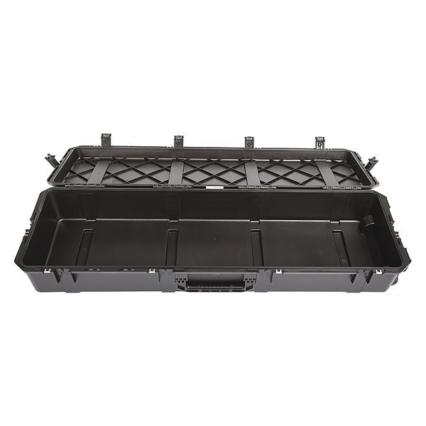 Protective Case, Bottom Depth 7 in, Closure Type Latches, Color Black, Electrostatic Discharge Not Electrostatic Discharge Conductive, Foam Design No Foam, Handle Style Folding, Includes Foam Insert Foam Insert Not Included, Inside Depth 9 in, Inside Length 56 in, Inside Width 16 in, Lid Depth 2 in, Material Plastic, Maximum Operating Temperature 180 Degrees F, Minimum Operating Temperature -60 Degrees F, Number of Latches 6, Number of Wheels 2, Overall Depth 10 5/8 in, Overall Length 58 3/4 in
