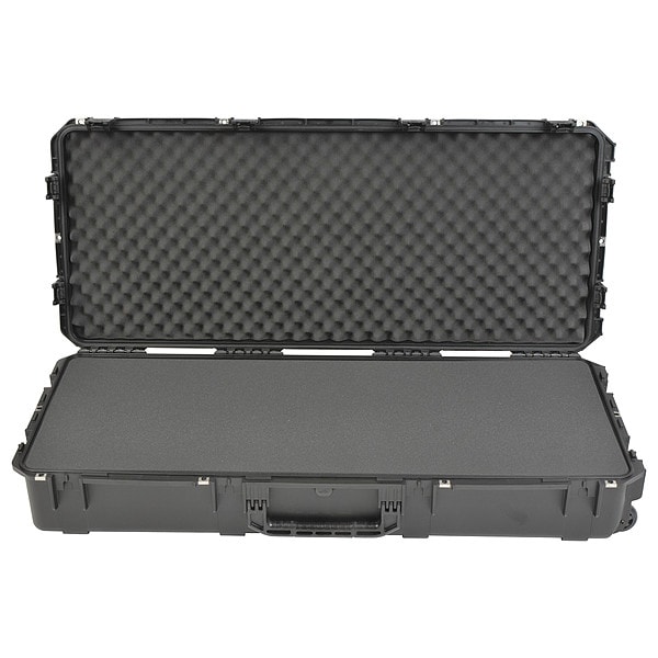 Protective Case, Bottom Depth 6 in, Closure Type Latches, Color Black, Electrostatic Discharge Not Electrostatic Discharge Conductive, Foam Design Solid, Handle Style Folding, Includes Foam Insert Foam Insert Included, Inside Depth 8 in, Inside Length 47 in, Inside Width 19 in, Lid Depth 2 in, Material Plastic, Maximum Operating Temperature 180 Degrees F, Minimum Operating Temperature -69 Degrees F, Number of Latches 8, Number of Wheels 2, Overall Depth 8 7/8 in, Overall Length 49 5/8 in