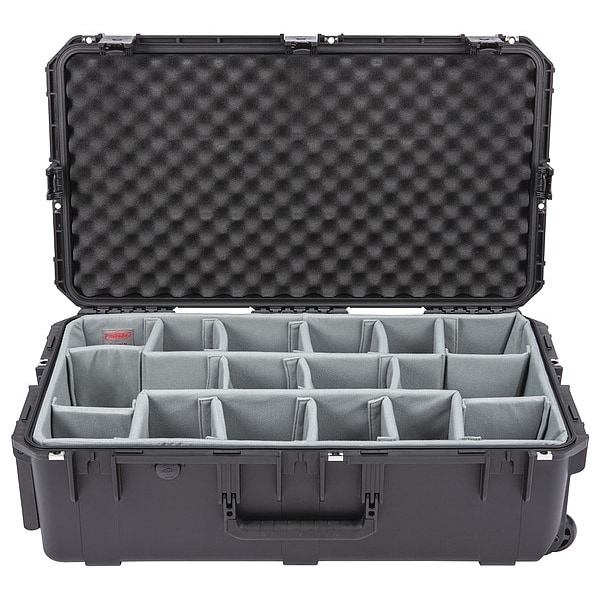 Protective Case, Bottom Depth 8 in, Closure Type Latches, Color Black, Electrostatic Discharge Not Electrostatic Discharge Conductive, Foam Design Solid, Handle Style Folding, Includes Foam Insert Foam Insert Included, Inside Depth 10 in, Inside Length 30 in, Inside Width 16 in, Lid Depth 2 in, Material Plastic, Maximum Operating Temperature 180 Degrees F, Minimum Operating Temperature -69 Degrees F, Number of Latches 5, Number of Wheels 2, Overall Depth 10 7/8 in, Overall Length 32 3/8 in