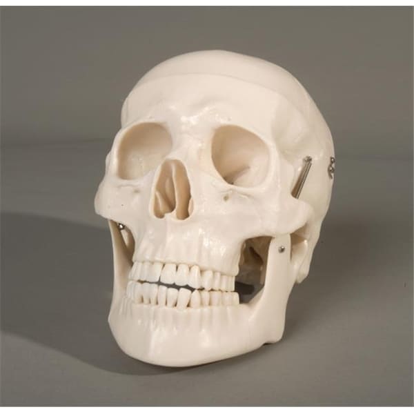 Life-size 1st class skull, which features a movable jaw that is spring loaded, and removable skull cap.