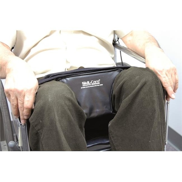 A comfortable shaped foam wedge designed to control abduction/contraction in the wheelchair. Held securely in place with adjustable cloth hook and eye straps (each strap is 25"L) Wipe-clean vinyl cover. Promotes proper thigh alignment.