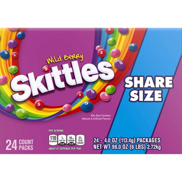 Skittles Share Size Wildberry Candy 4 oz. Packet, PK144 (Discontinued)