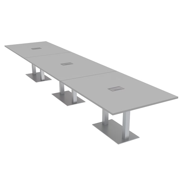 Rectangle Conference Table With Power Unit, 48 in W, 192 in L, Grey