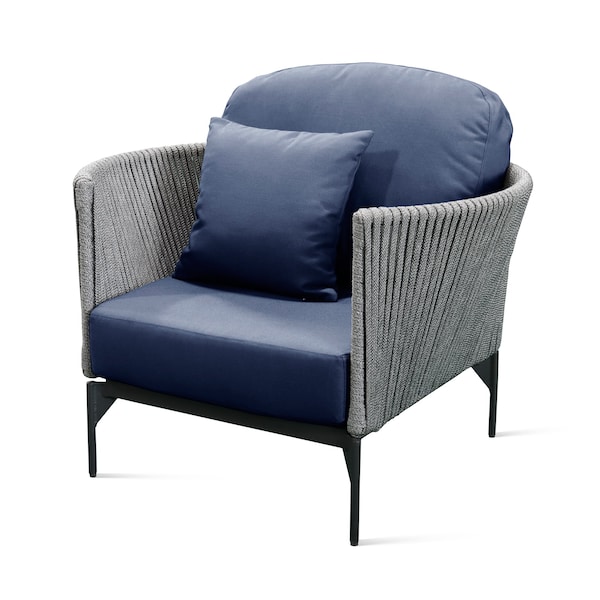 A captivating piece that effortlessly transforms any outdoor space into a stylish haven. Its broad backrests lend an intimate and unparalleled charm. The chair features a powder-coated aluminum frame and a light gray polystrand strap rope. A comfortable cushion is included in 5453 Sunbrella Canvas or you can choose from other available Sunbrella options. Crafted for durability, the chair combines modern elegance with resistance against the elements. Create a personalized outdoor oasis with the Boston Outdoor Armchair, where style, comfort, and durability converge.