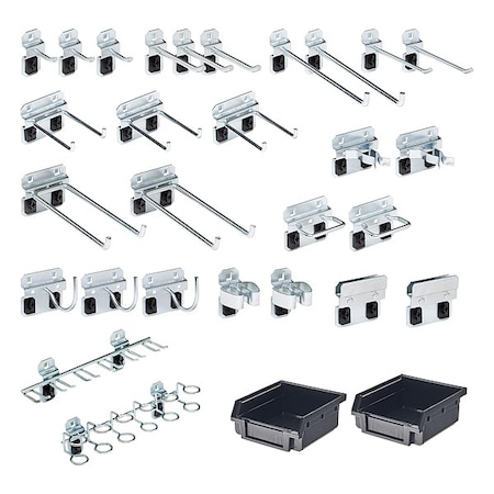 Slotted Tool Board Hook Kit, 26 Piece, Blk