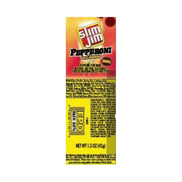 Slim Jim Pepperoni 'N Cheese Snack Sticks 1.5 oz. Sticks, PK108