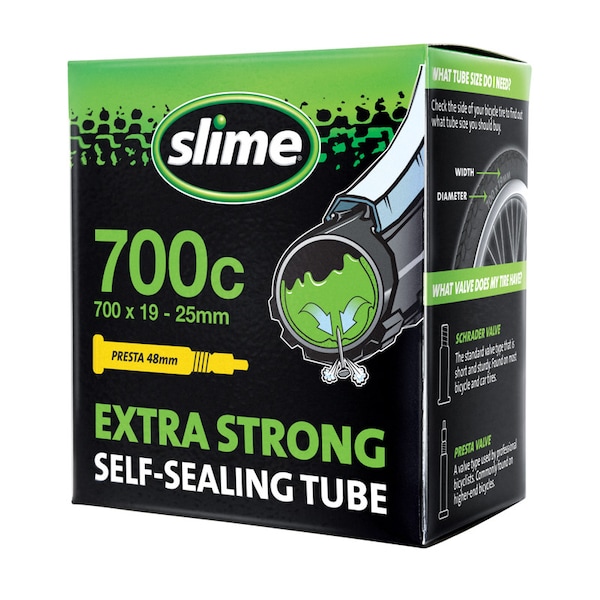Slime Self-Sealing Smart Tubes are pre-installed with Slime Sealant, providing maximum puncture protection. Slime Tube Sealant prevents and repairs flat tires caused by puncturing objects up to 1/8-inch (3mm) in diameter. That means longer distances, faster times and no flat tires. Slime Self-Sealing tubes install like regular bike tubes and repeatedly seal punctures for up to two years. Designed to seal tread area punctures.