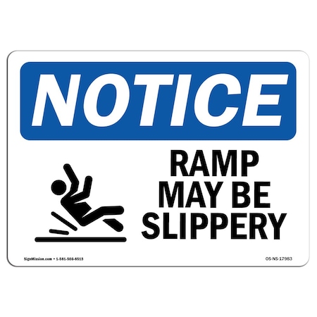 OSHA Notice Sign, Ramp May Be Slippery With Symbol, 14in X 10in Decal, 14" W, 10" H, Landscape