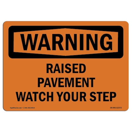 OSHA WARNING Sign, Raised Pavement Watch Your Step, 18in X 12in Decal, 12" W, 18" H, Portrait
