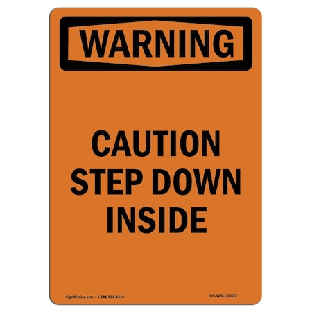 OSHA WARNING Sign, Caution Step Down Inside, 18in X 12in Aluminum, 12" W, 18" H, Portrait