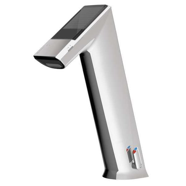 Bathroom Faucet, Faucet Operation Sensor, Handle Type Sensor, Connection 3/8 In. Compression, 1.5 gpm Flow Rate, Number of Holes 1, Mounting Hole Center to Center 1 In., Body Material Zinc Die Cast, Faucet Spout Standard, ADA Compliant Yes, Drain Type None, Mounting Type Deck, Power Source Solar and Battery Powered, Voltage 6VDC, 2 AC Amps, Spout Length 6-1/16 In., Sensor Range 4 In. to 5 In., Valve Type Solenoid, Finish Chrome, Overall Height 10 In., Flow Outlet Type Aerated