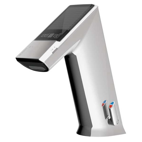 Bathroom Faucet, Faucet Operation Sensor, Handle Type Sensor, Connection 3/8 In. Compression, 0.5 gpm Flow Rate, Number of Holes 1, Mounting Hole Center to Center 1 In., Body Material Zinc Die Cast, Faucet Spout Standard, ADA Compliant Yes, Drain Type None, Mounting Type Deck, Power Source Solar and Battery Powered, Voltage 6VDC, 2 AC Amps, Spout Length 5-7/32 In., Sensor Range 4 In. to 5 In., Valve Type Solenoid, Finish Chrome, Overall Height 6-15/32 In., Flow Outlet Type Laminar