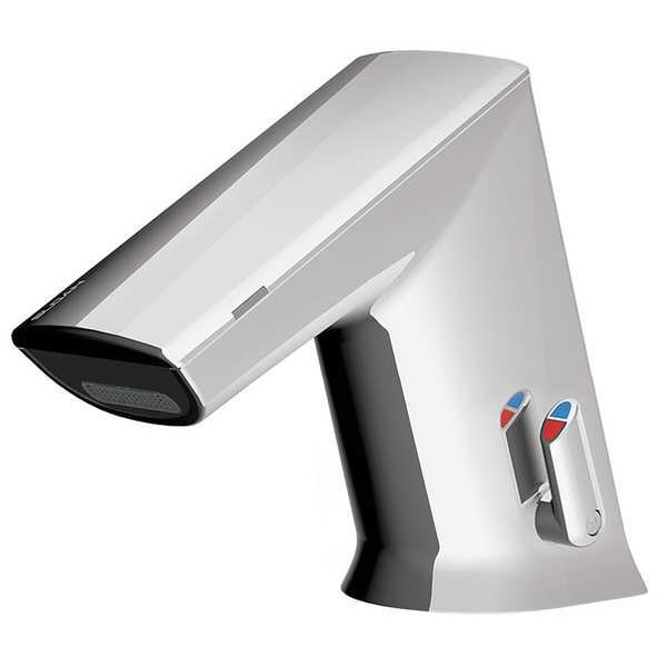 Bathroom Faucet, Faucet Operation Sensor, Handle Type Sensor, Connection 3/8 In. Compression, 1.5 gpm Flow Rate, Number of Holes 1, Mounting Hole Center to Center 1 In., Body Material Zinc Die Cast, Faucet Spout Standard, ADA Compliant Yes, Drain Type None, Mounting Type Deck, Power Source Battery, Voltage 6VDC, 2 AC Amps, Spout Length 4 In., Sensor Range 4 In. to 5 In., Valve Type Solenoid, Finish Chrome, Overall Height 5 In., Flow Outlet Type Aerated