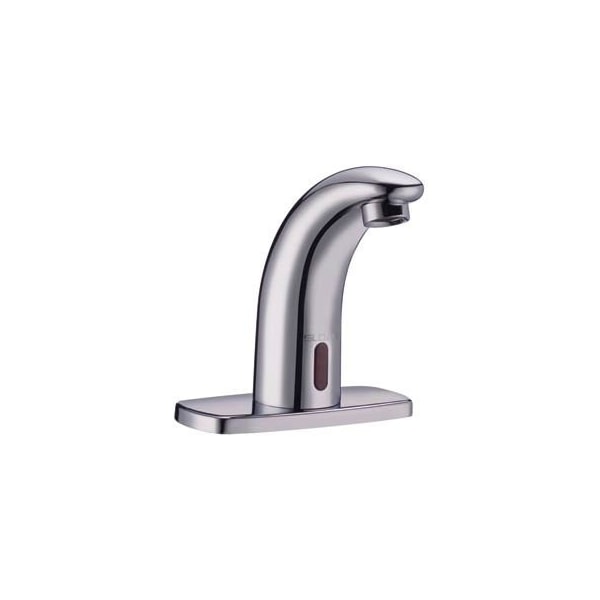 Sloan sf-2400-4 sensor activated, electronic, pedestal hand washing faucet for tempered or hot/cold water operation with 4" trim plate. 6 vdc plug-in transformer powered with battery backup. splash-proof circuit control module 24" long flex hose bak-chek tee for hot cold supply 6 vdc plug-in transformer model sf-2400 only non-aerated spray head trim plate kit for 4" centerset sink filtered solenoid valve with serviceable strainer filter 36" long sensor cable adjustable infrared sensor range includes appropriate mounting hardware includes four 4 aa-size batteries
