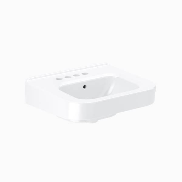 - White, vitreous china wall hung lavatory with ledgeback