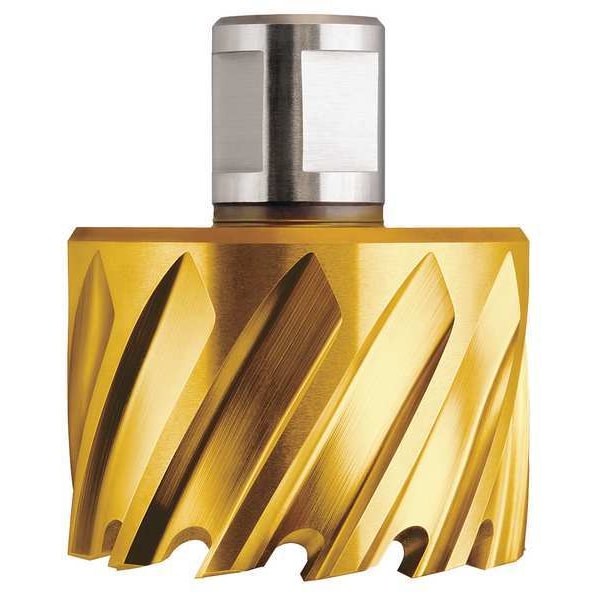 Annular Cutter, High Speed Steel, TiN, 2 1/2 in, Weldon Flat, Shank Diameter 3/4 in, Maximum Cutting Depth 1 in