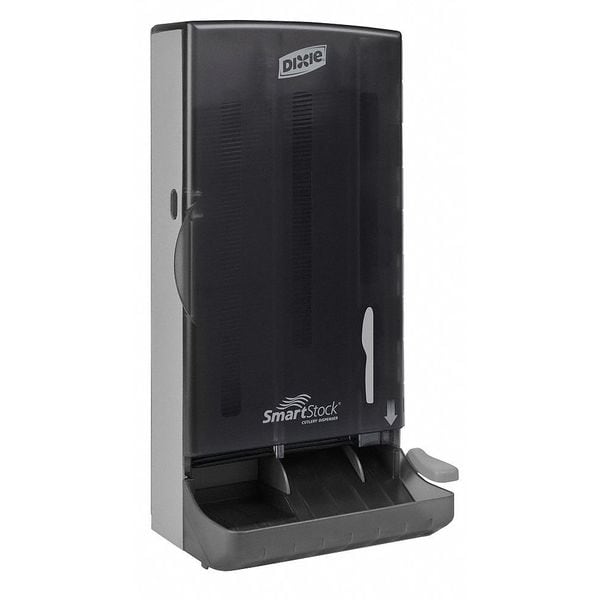 Knife Dispenser, Activation Lever, Color Black, Compatible Utensils Knife, Depth 6 1/4 in, Dispenser Type Knife Dispenser, Height 17 5/8 in, Letter Series Series O, Mounting Type Countertop, Stand, Wall, Number of Pieces Held 80 pcs Cutlery, Refill Indicator No, Series Dixie Ultra(R) SmartStock(R), Standards Not Applicable, Width 9 7/8 in, Bio-Based No, BPI Certified No, Compatible Utensil Grainger Part Number 21AN07, 6ZCR2, Compatible Utensil Manufacturer Model Number SSK11B, SSK51