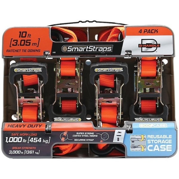 TieDown, 1 in W, 10 ft L, Polyester, Orange, 1000 lb, SHook End Fitting, Steel End Fitting