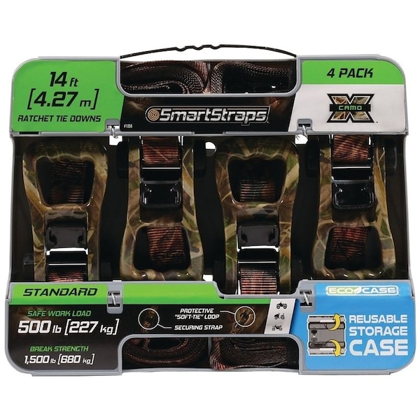 TieDown, 1 in W, 14 ft L, Polyester, 500 lb, SHook End Fitting, Steel End Fitting