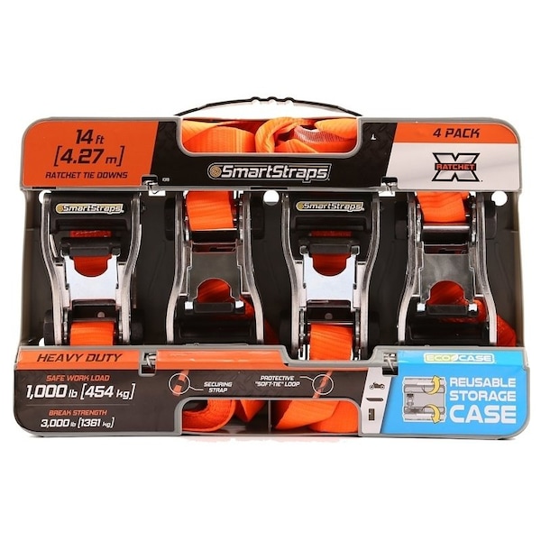 TieDown, 114 in W, 14 ft L, Polyester, Orange, 1000 lb, SHook End Fitting, Steel End Fitting