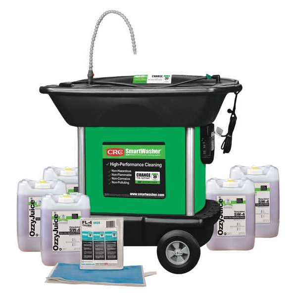 Parts Washer, For Solution Base Type Water-Based (Microbial), Cleaning Method Bioremediation, Flush, Manual, Tank Material Plastic, Tank Capacity 25 gal, Maximum Fluid Level 8 in, Load Capacity 1,000 lb, Tank Overall Width 33 in, Tank Overall Depth 18 in, Tank Overall Height 8 in, Minimum Operating Temperature 105 Degrees F, Maximum Operating Temperature 115 Degrees F, Voltage 110V, Horsepower 1/125 hp, Includes Regular Grade FL-4 Ozzymat Filter