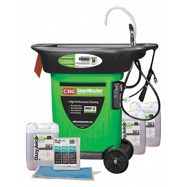 Parts Washer, For Solution Base Type Water-Based (Microbial), Cleaning Method Bioremediation, Flush, Manual, Tank Material Plastic, Tank Capacity 15 gal, Maximum Fluid Level 8 in, Load Capacity 400 lb, Tank Overall Width 27 in, Tank Overall Depth 19 1/2 in, Tank Overall Height 8 in, Minimum Operating Temperature 105 Degrees F, Maximum Operating Temperature 115 Degrees F, Voltage 110V, Horsepower 1/125 hp, Includes Regular Grade FL-4 Ozzymat Filter
