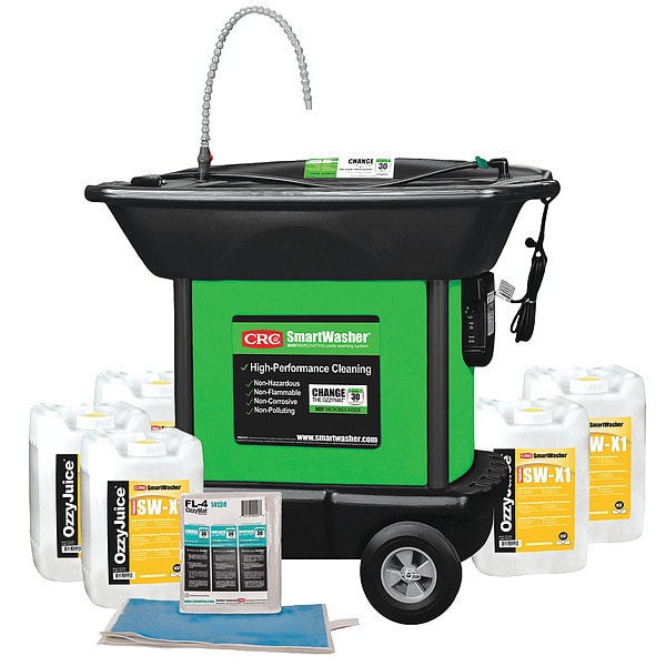 Parts Washer, For Solution Base Type Water-Based (Microbial), Cleaning Method Bioremediation, Flush, Manual, Tank Material Plastic, Tank Capacity 25 gal, Maximum Fluid Level 8 in, Load Capacity 1,000 lb, Tank Overall Width 33 in, Tank Overall Depth 18 in, Tank Overall Height 8 in, Minimum Operating Temperature 105 Degrees F, Maximum Operating Temperature 115 Degrees F, Voltage 110V, Horsepower 1/125 hp, Includes Regular Grade FL-4 Ozzymat Filter
